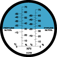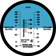 雙標度:適用測量乙二醇與丙二醇的凍結溫度;亦具有這些冷卻劑濃度的標度。