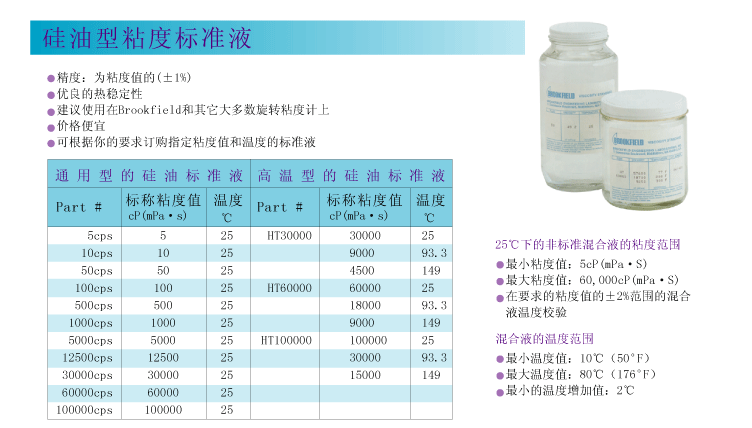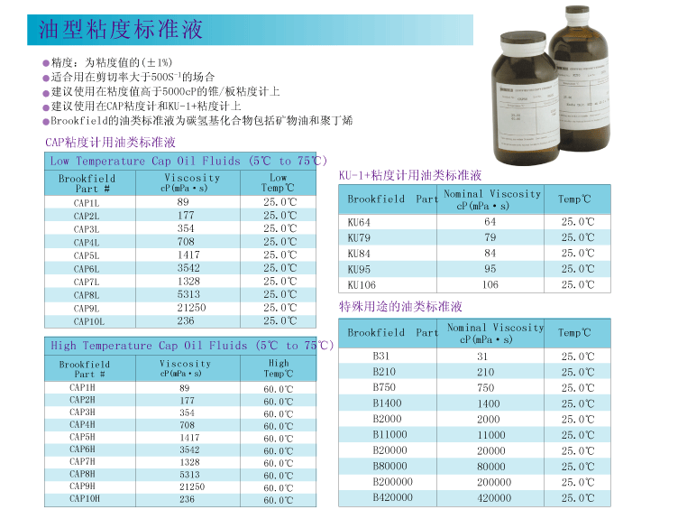 · Brookfield 的油類標準液為碳氫基化合物,包括礦物油和聚丁烯