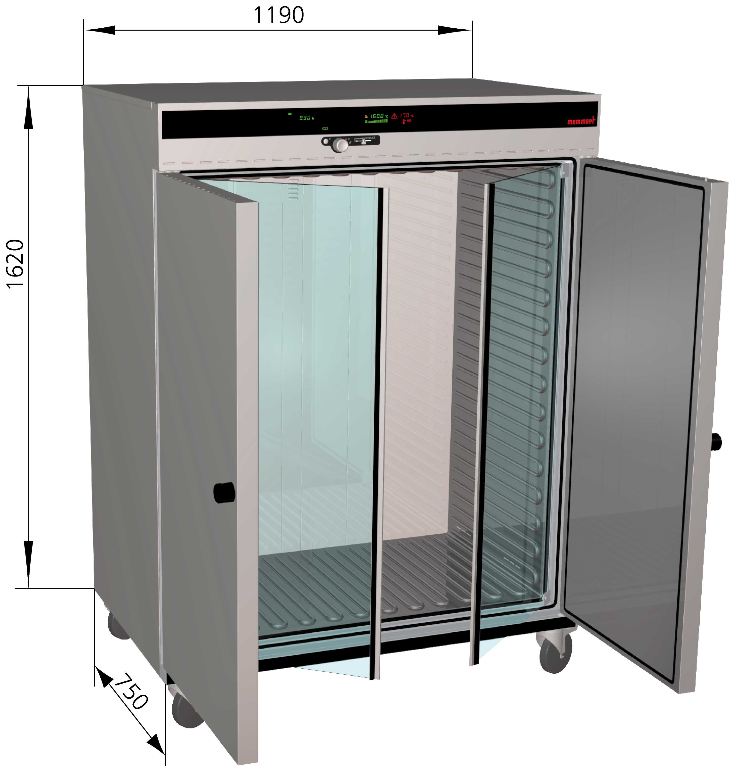 配置雙重門, 內為玻璃門, 外為不銹鋼門, 開外門觀查時不會降低箱內溫度