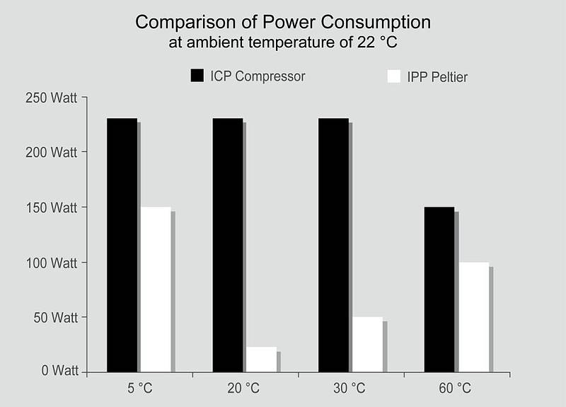 杜絕了與外部空氣進行交換, 因此控制更清潔、更精準、更節能(IPP/ICP消耗電能對比圖)