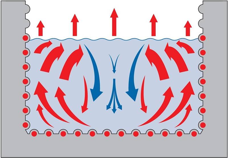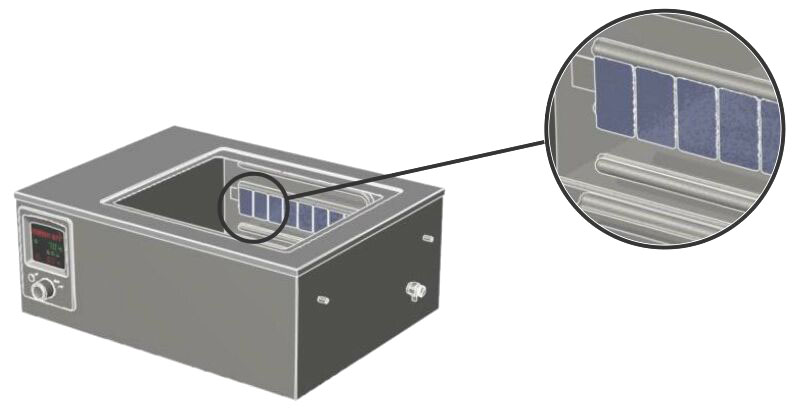 ◇ 水浴槽內(nèi)采用三方向、多單元大面積加熱系統(tǒng)(見 示意圖),