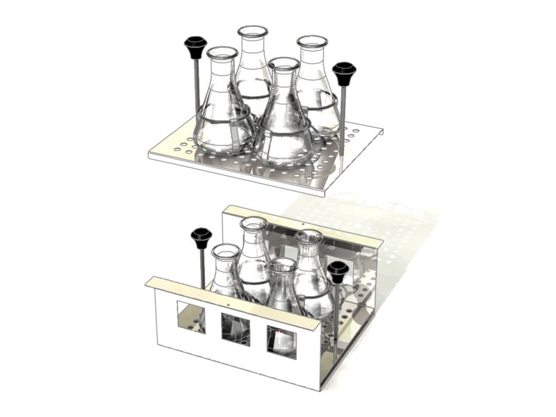 4、搖床配件可與水浴組合成水浴搖床(往復搖床,沖程為15mm,控制頻率為10-150次/分鐘), 放入配件成為水浴搖床, 拿出配件成為水浴,